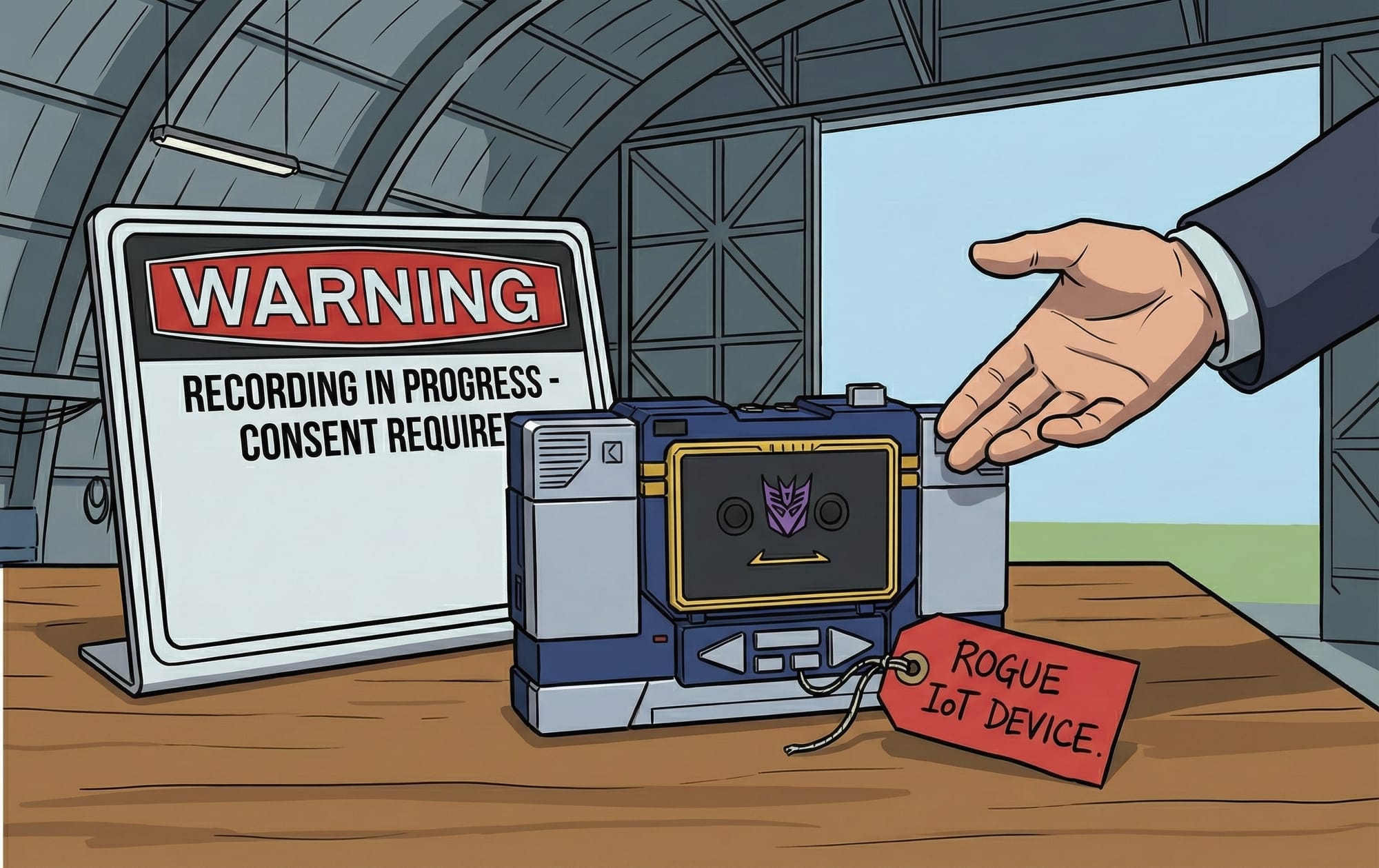 “The defendant acted as a rogue IoT device with a heavy weapons loadout,” argued Lead Prosecutor Alexis Colby. “He sat on that table, disguised as a piece of consumer electronics, and recorded a private meeting. In Oregon, you cannot do that unless everyone in the room says yes. It doesn't matter if you are a journalist or a Decepticon High Commander. You need a release form.”